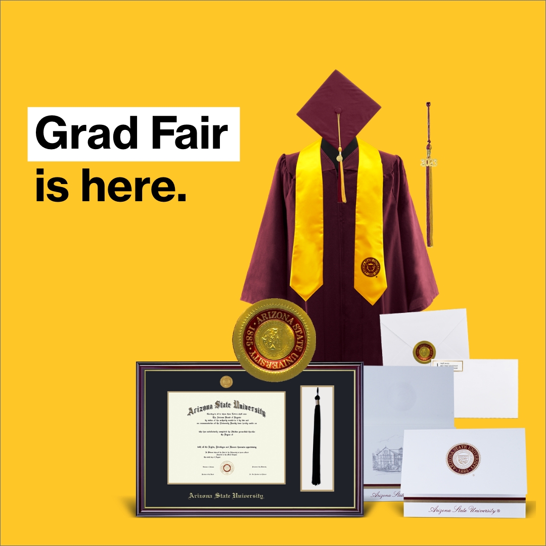 The ASU Grad Fair is your one chance to receive exclusive discounts on graduation packages including your cap, gown and tassel. Discounts are offered through Herff Jones, Arizona State University’s official graduation regalia vendor. After Grad Fair, graduation packages are full price online or in store.